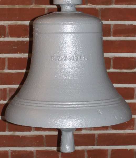 Auch für das nun verwaiste "alte Glöckchen" wurde ein neuer Platz gefunden. Sie hing von nun an sichtbar im rechten Glockenfenster der Kirche. Da es auf der anderen Seite dieses Giebels auch ein paralell angebrachtes Fenster gab, kann man wohl davon ausgehen, dass auch hier ein Glockeneinbau geplant gewesen war, für die aber das Geld wohl nicht mehr gereicht hatte.