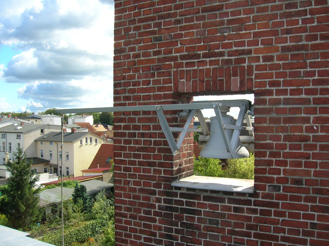 Im Laufe der Jahre zeigten sich außerdem auch bereits Schäden an der Aufhängung im Mauerwerk des Glockenfensters. Die gerissenen und gebrochenen Mauerziegel und der verwitterte Fugenmörtel wurden dann im Verlauf der Sanierungsarbeiten 2008 bis 2015 mit beseitigt.