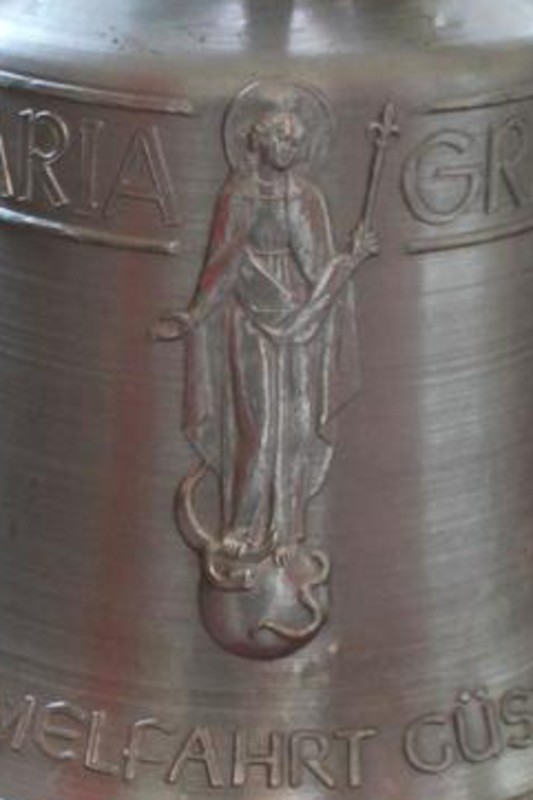 Die größere der beiden Glocken mit der Nr. 20052, einem Gewicht von 138 kg und dem Glockenton fis´´ - 11 wurde der Gottesmutter Maria geweiht. Sie trägt oben die Inschrift:
