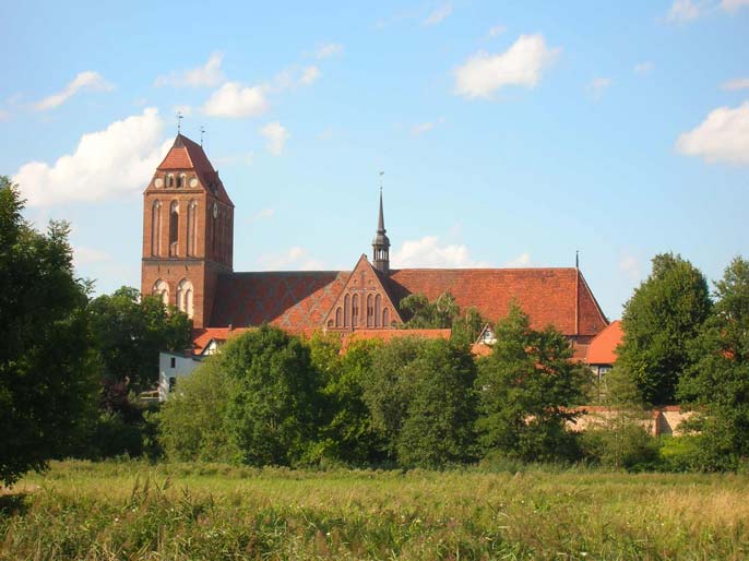 Aus diesen Anfängen heraus entwickelte sich in der Stadt bald ein reiches kirchliches Leben, aber stets beherrscht von den "Domherren", auf deren Zustimmung sogar die Fürsten in kirchlicher Hinsicht Rücksicht nehmen mussten. Nachdem bereits in dem Ortsteil "Alt Güstrow" nördlich der Nebel eine Kirche entstanden war (sie gehörte auch weiterhin zum Bistum Schwerin und wurde 1243 erstmalig genannt), entstand auf dem Marktplatz die Stadtkirche "St.Marien", die Pfarrkirche der Bürgerschaft (erste Erwähnung 1308).