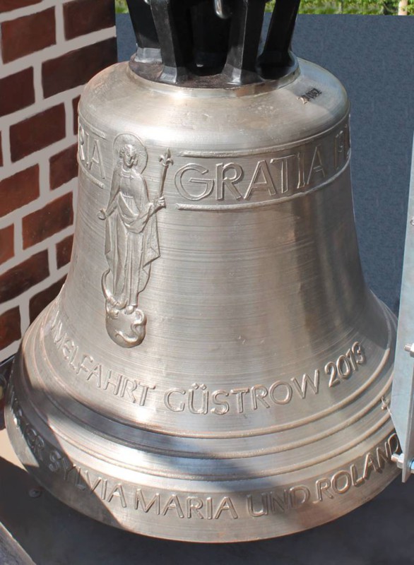 Die größere der beiden Glocken mit der Nr. 20052, einem Gewicht von 138 kg und dem Glockenton fis´´ - 11 wurde der Gottesmutter Maria geweiht. Sie trägt oben die Inschrift: